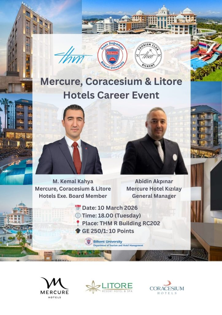 THM Online Career Event. Looking for recruitment or internship? Career Event organized by Bilkent University Department of Tourism and Hotel Management in collaboration with the Double Tree by Hilton Dubai located in the United Arab Emirates on 15 April 2021 @18:00 (GMT+3). To join our meeting with the executives, please register at